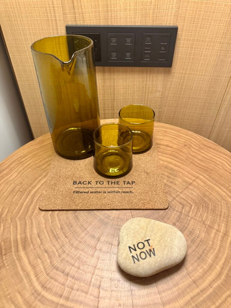 The bathroom was spacious and well-stocked with toiletries from Bamford, an up and coming brand from England. One feature that stood out was the fresh drinking water faucet integrated into the bathroom sink. It felt like a clever and environmentally conscious alternative to bottled water. I’ve not come across that previously.
