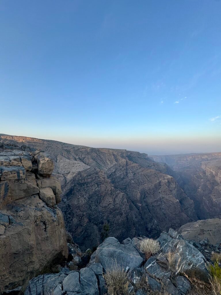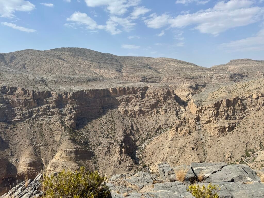 Jebel Akhdar or Jabal Akhdar is part of the Al Hajar Mountains and is a scenic highland region about 150 km (3 hours) from Muscat. It’s a very different experience compared to the sea-side city of Muscat. It would be ideal to do a few nights in Muscat (probably 3-4 nights) followed by Jabal Akhdar (minimum 3 nights is recommended).