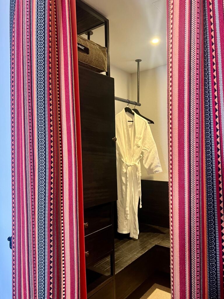 The bedroom included a separate walk-in wardrobe which was quite spacious. The hotel provided a carry bag and toiletries bag for use during the stay which was handy.
