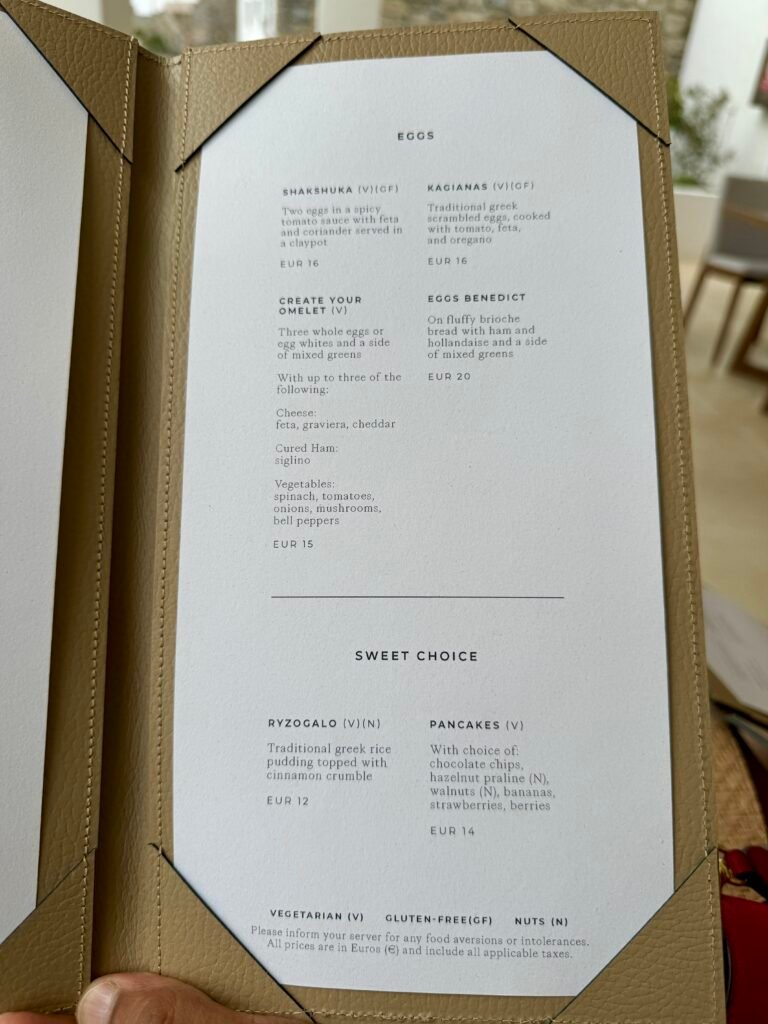 Breakfast options were limited and very egg-based. As someone who does not eat eggs, I was limited to Greek yogurt and waffles. On day one the service was really good. However, on day two, the service was really slow, and seemed like they had forgotten about our order. The staff were eager to please but we got the impression that they were still getting the hang of things as it was just the start of the season!