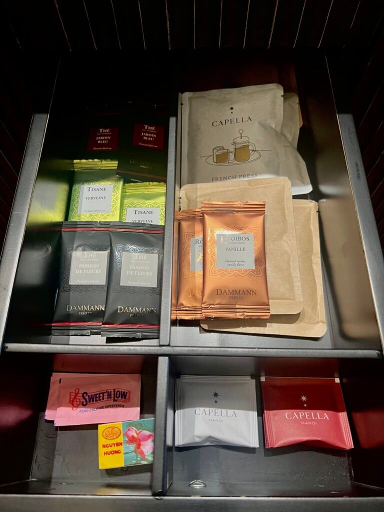 One more important point to note when comparing prices to other top luxury hotels such as Sofitel Legend Metropole, is that there are plenty of ‘inclusions’ in the Capella price. The minibar is complimentary, you have afternoon tea service, evening cocktails and all-day coffee/tea and other snacks. There’s a number of daily activities as well. Plus, given that the hotel has less than 50 rooms, you’ll receive personalised service for sure.