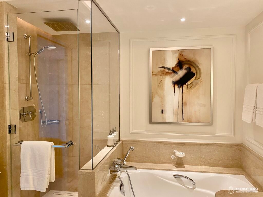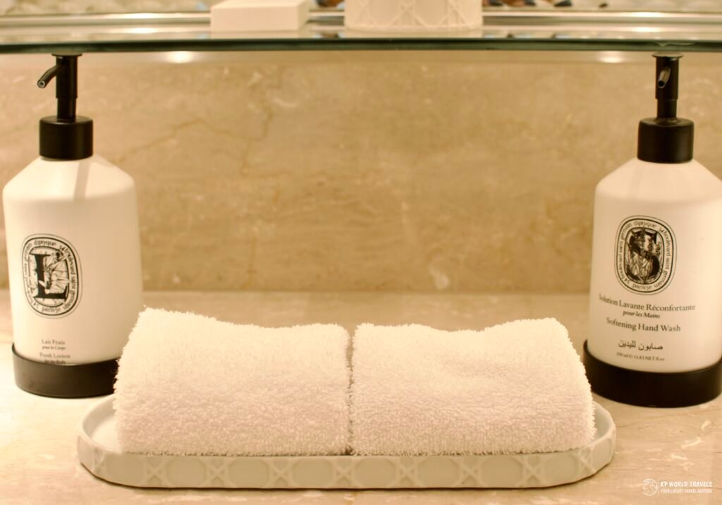 The bathroom was spacious and included a double vanity, separate shower, bath rub and toilet. All marble of course. Toiletries were Diptyque.