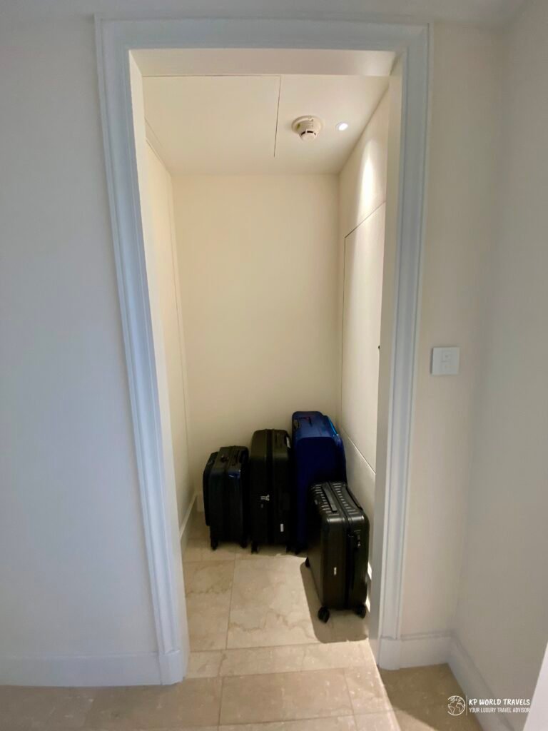 The corridor that led to the bathroom and bedroom included a wide wardrobe. This had a lovely Four Seasons Doha beach bag together with slippers, laundry bag, lint rollers etc.