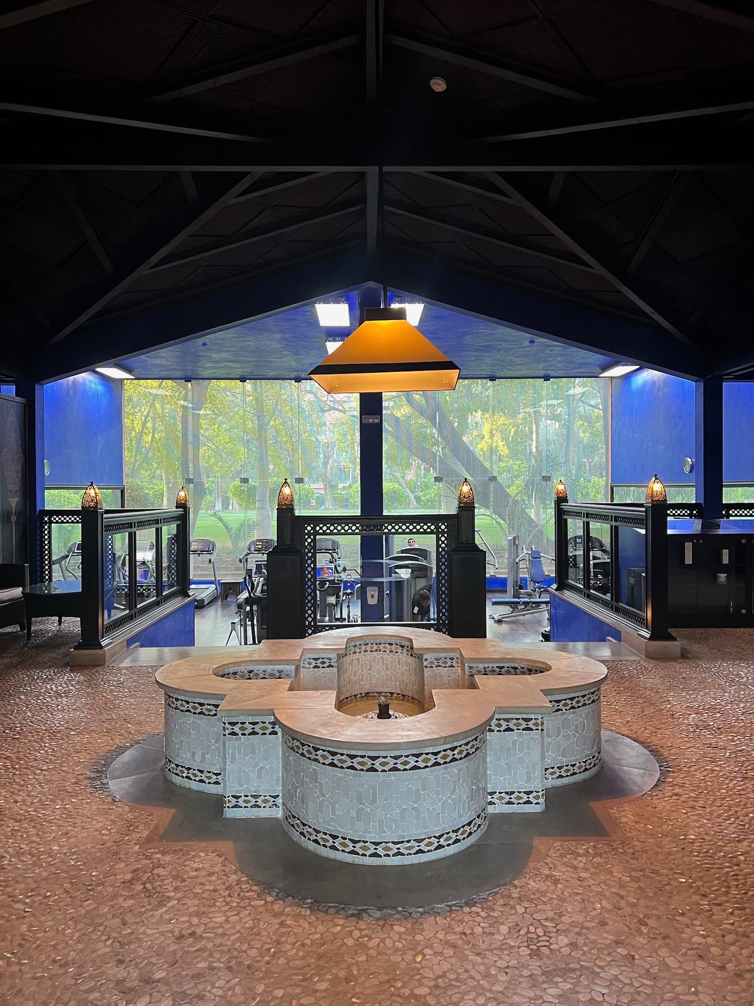 The gym at Mamounia is hidden somewhere in the vast gardens. I walked a while to get around and find it! The signage wasn’t very clear on where I had to turn. I got there eventually. It had everything you would need in a gym including cardio machines, free weights, and machines. As its accessible only to hotel guests, its fairly quiet.