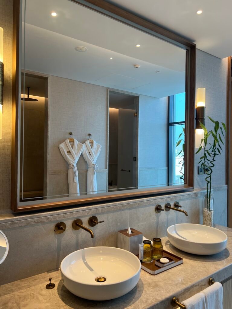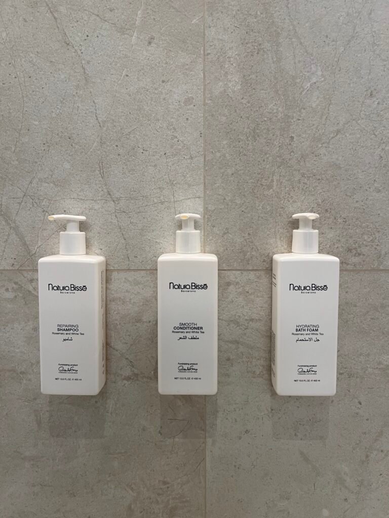 The bathroom was spacious, with double vanities and even separate “his and hers” shower rooms—all finished in calming sandstone tones. The toiletries were of a Spanish brand called Natura Bisse. Whilst the products were good, there was nothing memorable about it and I can’t understand why a Spanish brand was placed in an Asian hotel in Oman. I still rank the likes of Byredo, Diptyque, Le Labo and Aesop in the top category.
