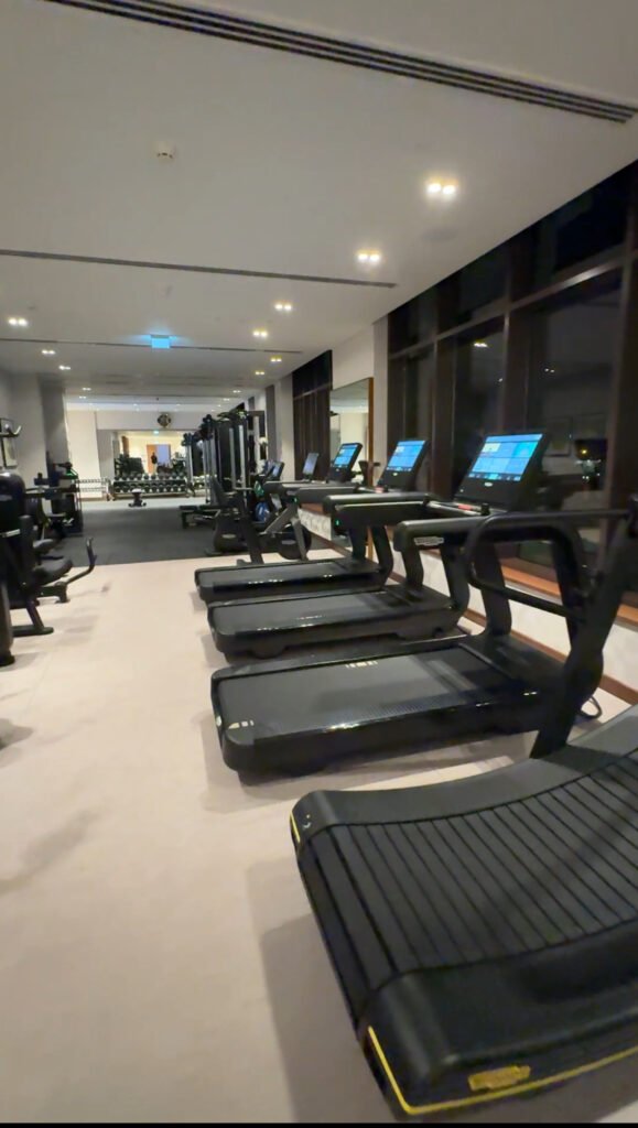 The hotel has a well-equipped gym with Technogym equipment and a number of outdoor spaces. It included a few treadmills and a range of weights. It’s not very large but adequate for the hotel’s size. There’s also a squash court and scenic outdoor workout spaces in the terrace.