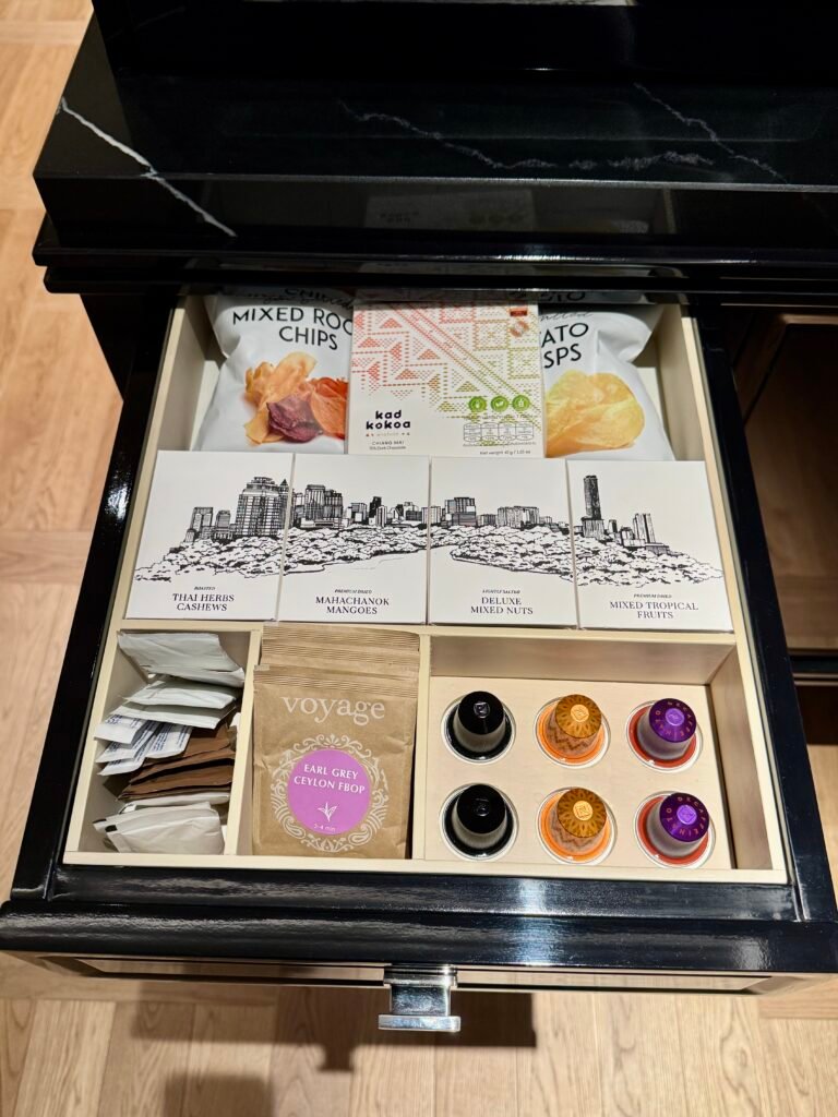 Booking under Marriott STARS, we were guaranteed an upgrade. We received a double upgrade from the Deluxe Room Lumpini Park View room to a Deluxe Room with Club Lounge access. Upon arrival, the staff immediately escorted us to the Club Lounge for check-in, bypassing the main reception entirely. From there, we took a second set of lifts, where we were welcomed with a drink and invited to enjoy the buffet before it closed—a thoughtful touch after a long day of travel.