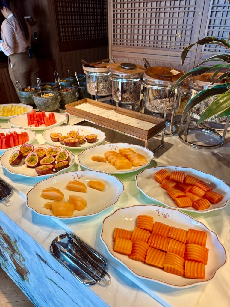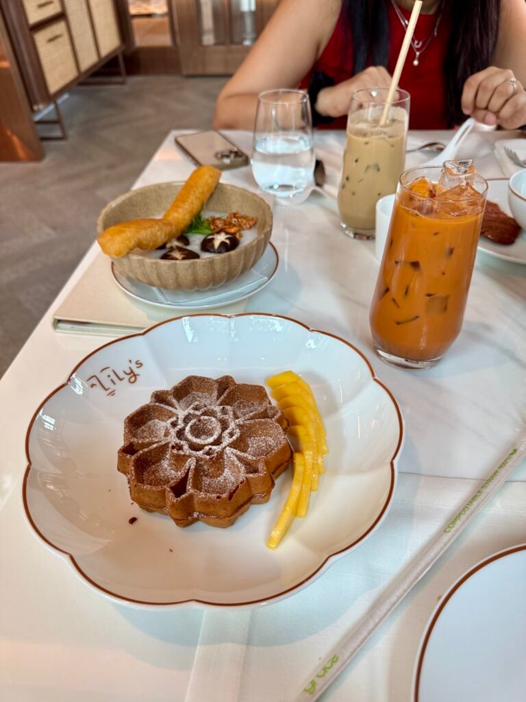 The options for breakfast included a combination of à la carte and buffet options. The buffet covered the usual continental favourite: pastries, yogurts, granolas, and more. While the à la carte menu featured a wider selection, including both continental dishes and local Thai specialties. We tried various options during our stay and the the Thai milk tea-flavoured waffle was a true highlight!