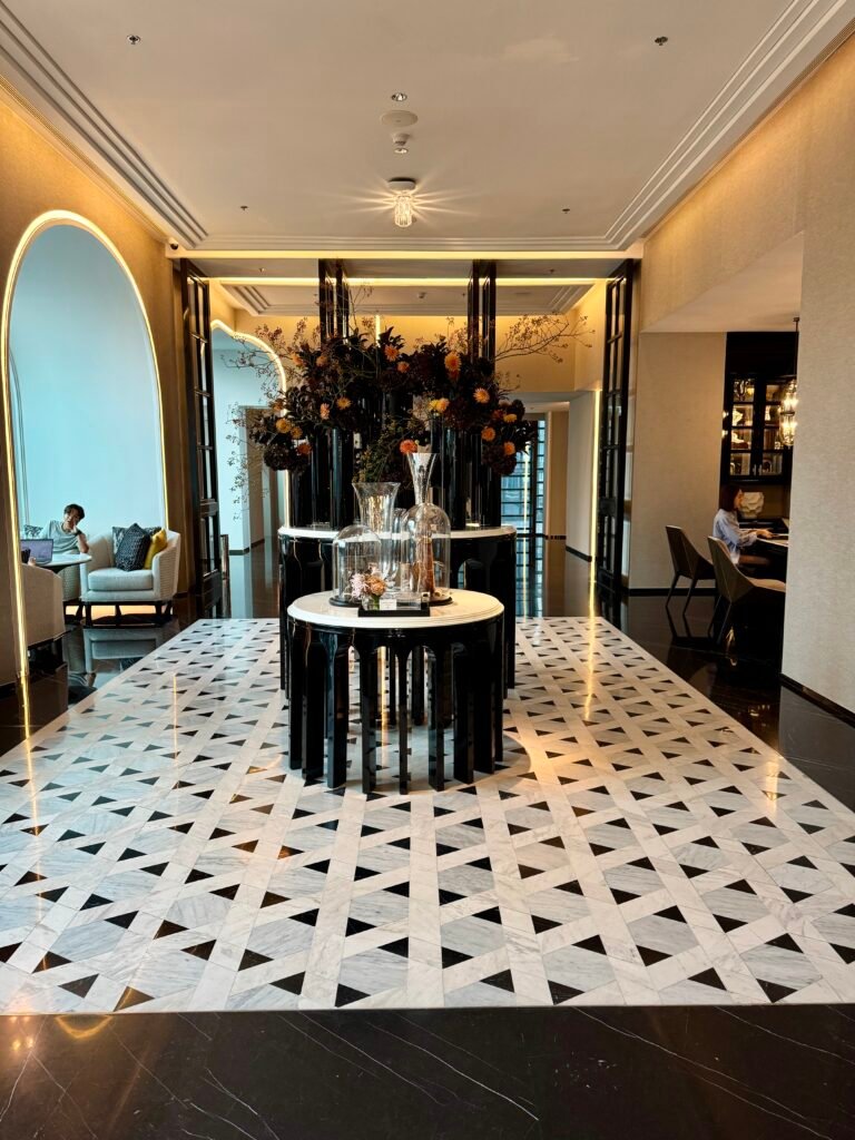 The property sits adjacent to the One Bangkok business district, but in the dark the signage wasn’t immediately clear. As I entered the hotel, the marble and the high ceilings instantly grabbed my attention. The hotel lobby is located two levels above street level and is accessed via lifts from the ground-floor entrance.