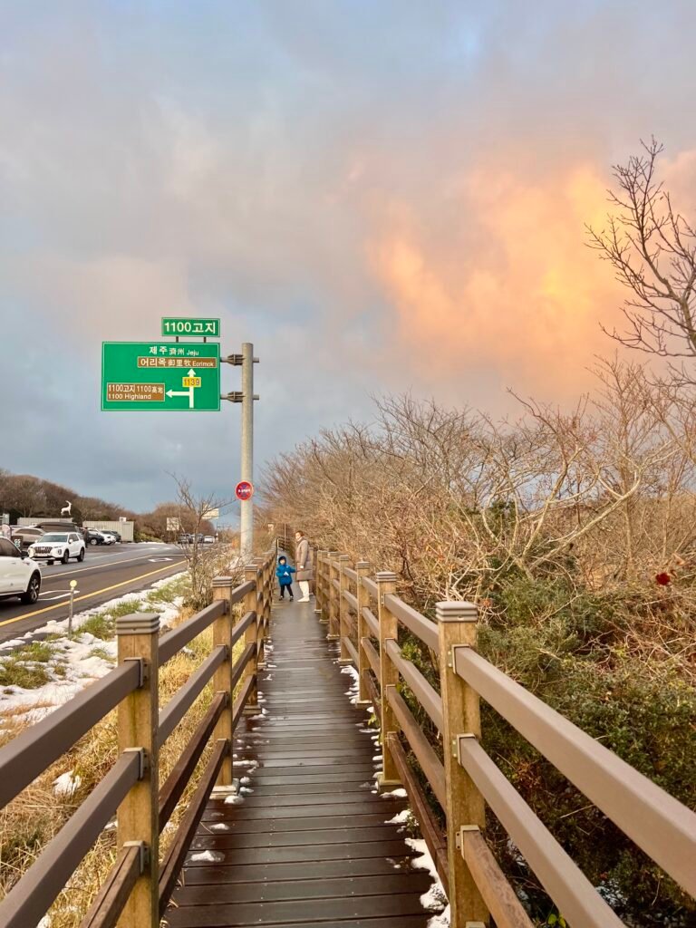 Known as the highest paved road in South Korea, the 1100m road was the first spot on the island that we spotted snow. Mount Hallasan (also known as Halla Mountains) is Korea’s highest peak at 1950m, and this road is at 1100m elevation. It is also a UNESCO and World Natural Heritage Site. Here as well, you can take a short hike through a very well-built walking pathway. We were here at about sunset and it was beautiful to walk amidst the trees and admire the autumn beauty.